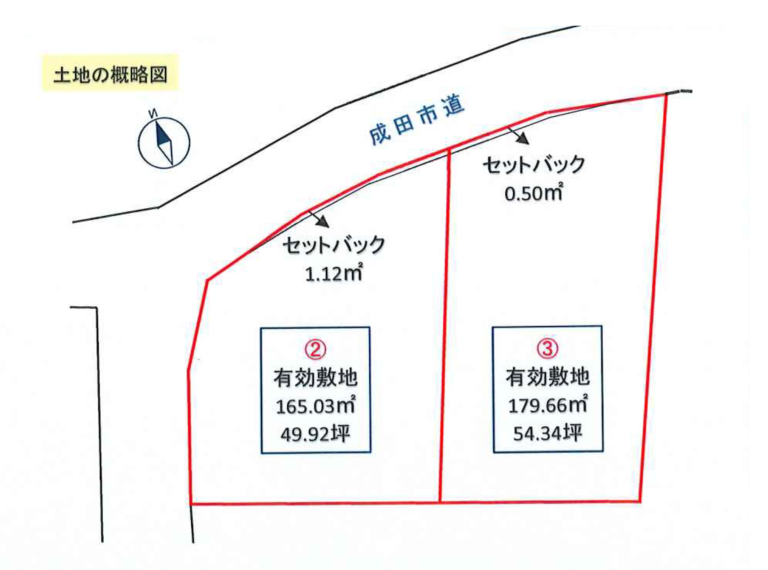 ①165.03㎡(49.92坪) ②179.66㎡(54.34坪) ※セットバック面積含む